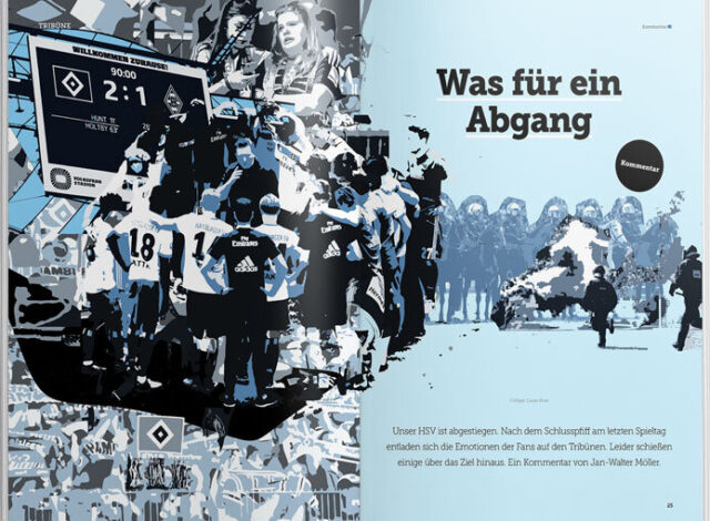 Nicht minder entsetzt bin ich, dass der Artikel von Herrn Möller, der sicher nicht nach Redaktionsschluss auf unerklärliche Weise in die Ausgabe gerutscht ist, sondern auf der abschließenden Redaktionssitzung erörtert wurde, seitens der Abteilungsleitung völlig unkommentiert blieb. Ich hätte es außerordentlich begrüßt – und ich denke, die Mitglieder hätten es auch erwarten dürfen –, wenn sich die SC-Abteilungsleitung zu den Ereignissen am letzten Spieltag positioniert hätte. Sollte nicht noch eine klare Absage an jegliche Gewalt im Stadion, auch durch die eigenen Ultras, von der Abteilungsleitung kommen, habe ich meine letzte Choreospende bereits abgegeben! NUR DER HSV!