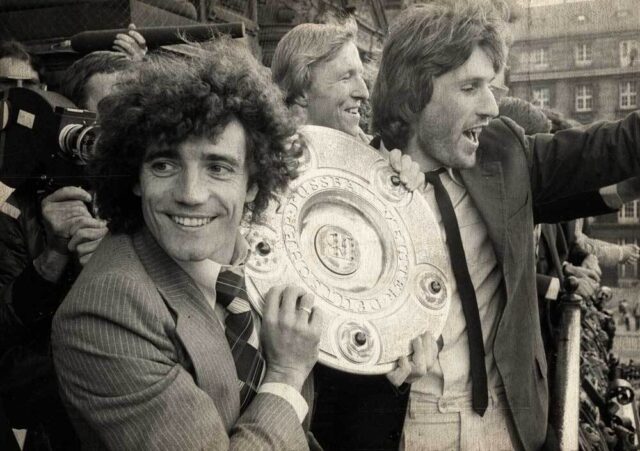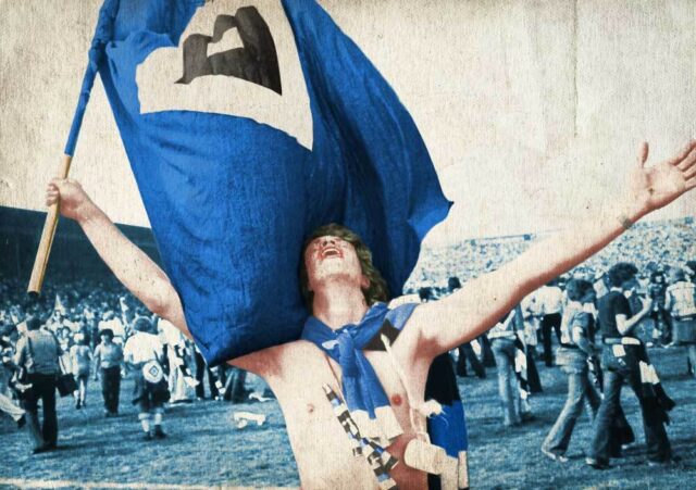 Das war am vorletzten Spieltag 1979. Der HSV war zu Gast auf der Bielefelder Alm und gewann die Meisterschaft. Nach dem Schlusspfiff gab es für uns Fans kein Halten mehr und wir sind auf das Spielfeld zum Feiern gestürmt.