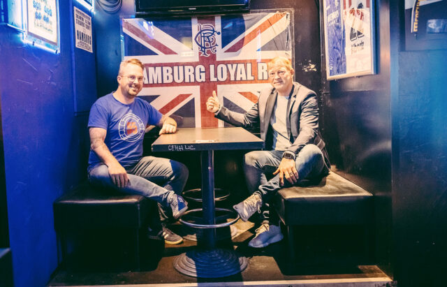 Ali and Timo share a burning passion for traditional, old school football. In July 2021, the two met for the first time. At the Tankstelle Sports Bar, they talk about similarities and differences between Rangers and HSV.