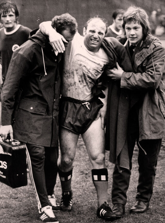 Hat ordentlich einstecken müssen: Uwe Seeler beim Spiel gegen Rot-Weiß Oberhausen.