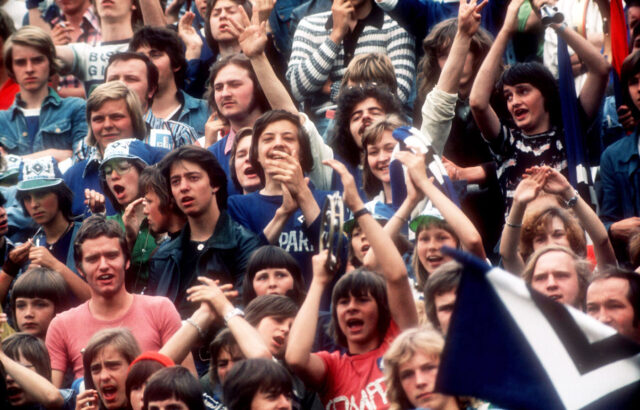 Michael Burzlaff, Walter Rehmer und Alfred Grosse erinnern sich in launiger Runde an die Anfänge ihres Fanclubs Die Rothosen: „Um mit der Bahn günstig reisen zu können, musstest du mindestens fünfzehn Leute haben, damit du fünfzig Prozent Ermäßigung kriegtest. Die musstest du erst mal zusammenbekommen! So ist unser Fanclub entstanden, damals der einzige Fanclub.“ In den Vereinsnachrichten, der „HSV-Post“, wurde entsprechend angekündigt: „Der Fan-Club fährt auswärts!“ Und jeder wusste Bescheid, wer gemeint war. Schnell wurden Kontakte geknüpft, die noch heute halten: Im März 1974 kamen die Glasgow Rangers zu einem Freundschaftsspiel nach Hamburg. Deren Fans brachten die ersten Schals mit, die vom HSV-Anhang gern adaptiert wurden. Der Beginn der Fan-Kultur, wie wir sie heute kennen – und einer langen, internationalen Fan-Freundschaft.