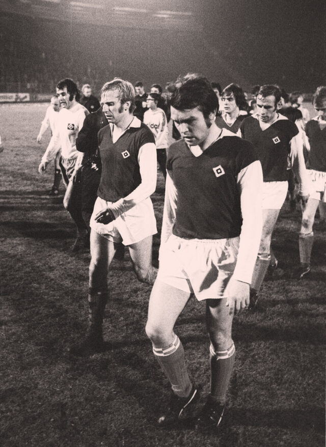 Der Vize-Pokalsieger HSV verliert Ende Oktober 1974 beim VfB Eppingen in der zweiten Runde mit 2:1. Eva Björnmose, die Frau von HSV-Star Ole, traut sich anschließend kaum mehr aus dem Haus: „Nein, nein, nein, ich mag nicht zum Einkaufen gehen. Das Ganze ist doch eine Schande. Was sollen bloß die Leute denken?!“ Der HSV rehabilitiert sich immerhin in den anderen Wettbewerben. In der Bundesliga wird er Vierter, im Uefa-Cup (so heißt der Messe-Cup seit der Saison 1971/1972) kommt man sogar bis ins Viertelfinale, wo gegen Juventus Turin Schluss ist – und man bis auf Weiteres eine Rechnung offen haben wird.